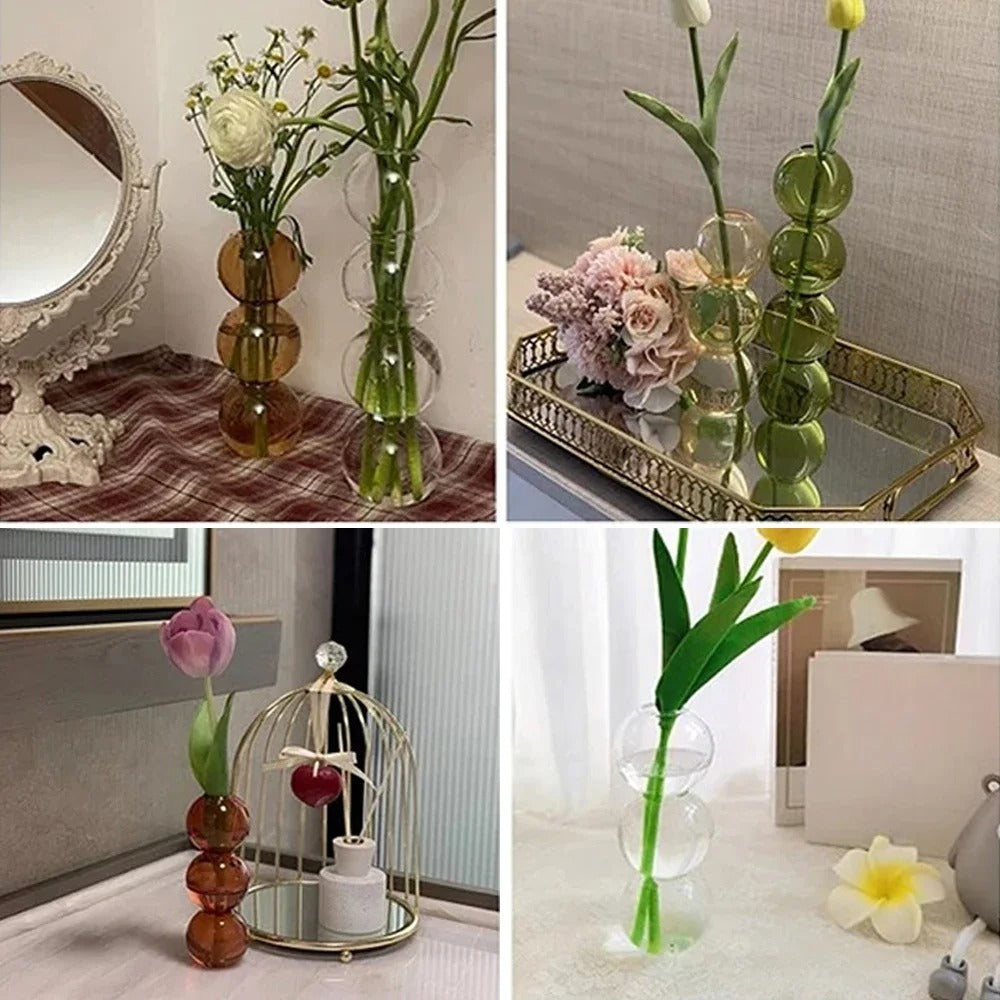 A: Each sphere connects internally, so water flows between all three chambers. You only need to fill through the top opening and the entire vase will fill evenly.