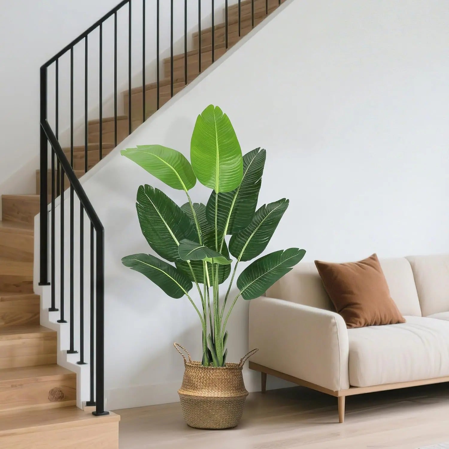 A: The leaves feature detailed vein patterns, natural color variations, and realistic textures that make it difficult to distinguish from a live plant at normal viewing distances.