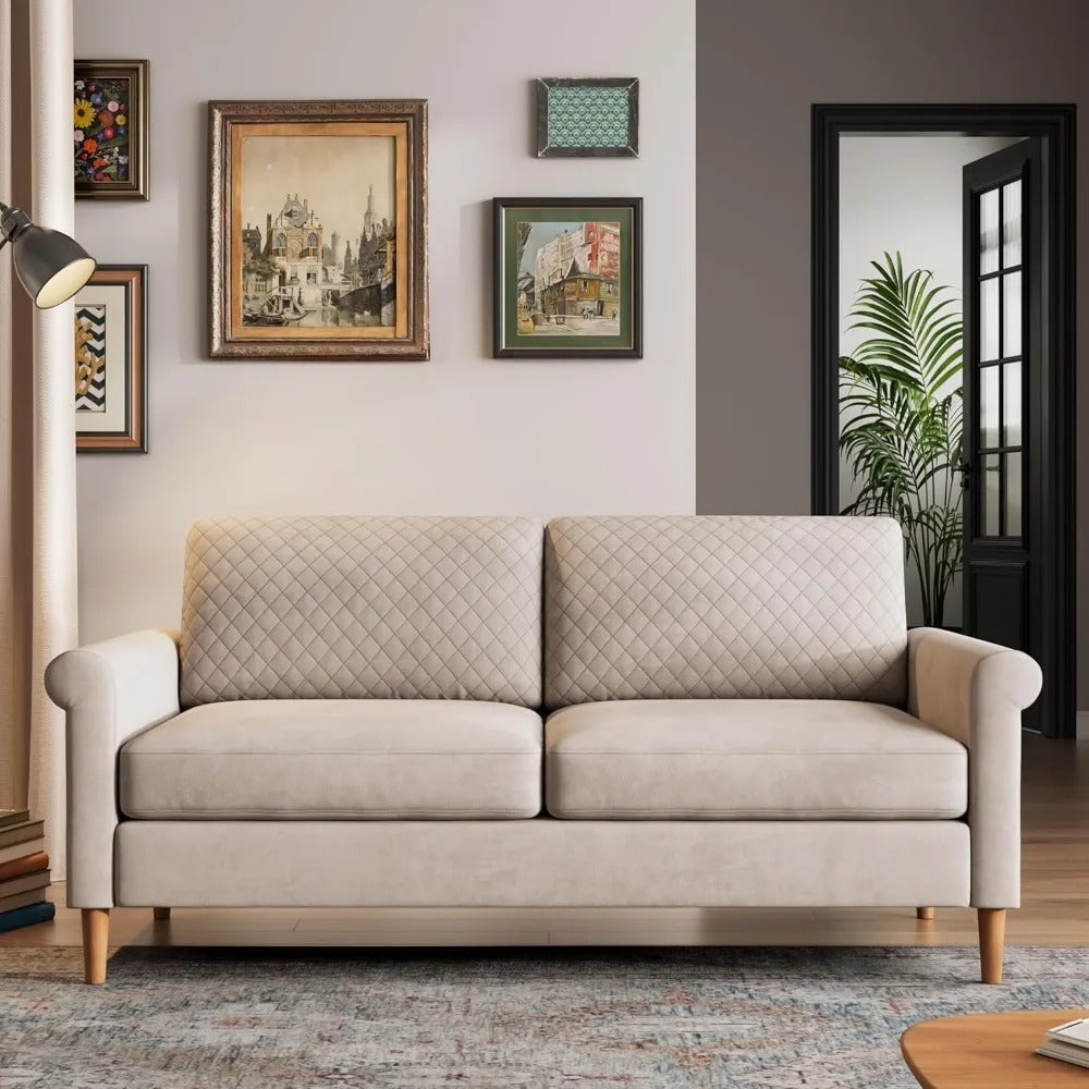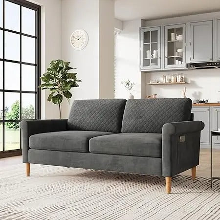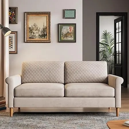 ""Okay so I was skeptical about ordering furniture online but this sofa? Actually really nice! The cat paw fabric is super soft (my cat approves too lol). Took about 12 days to arrive which wasn't bad. Only thing - one of the back cushions was slightly uneven stuffing but honestly not noticeable unless you're OCD like me. For the price? 100% worth it. Might order the matching armchair next month!""