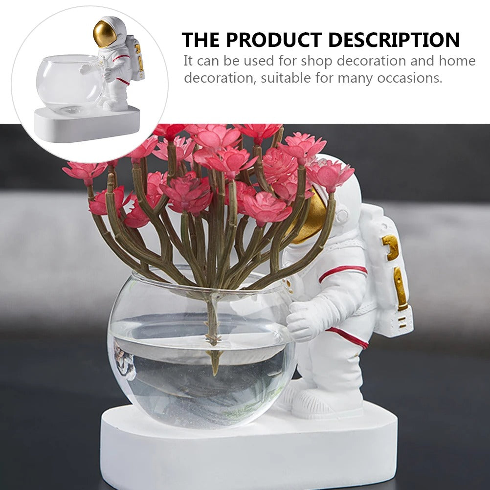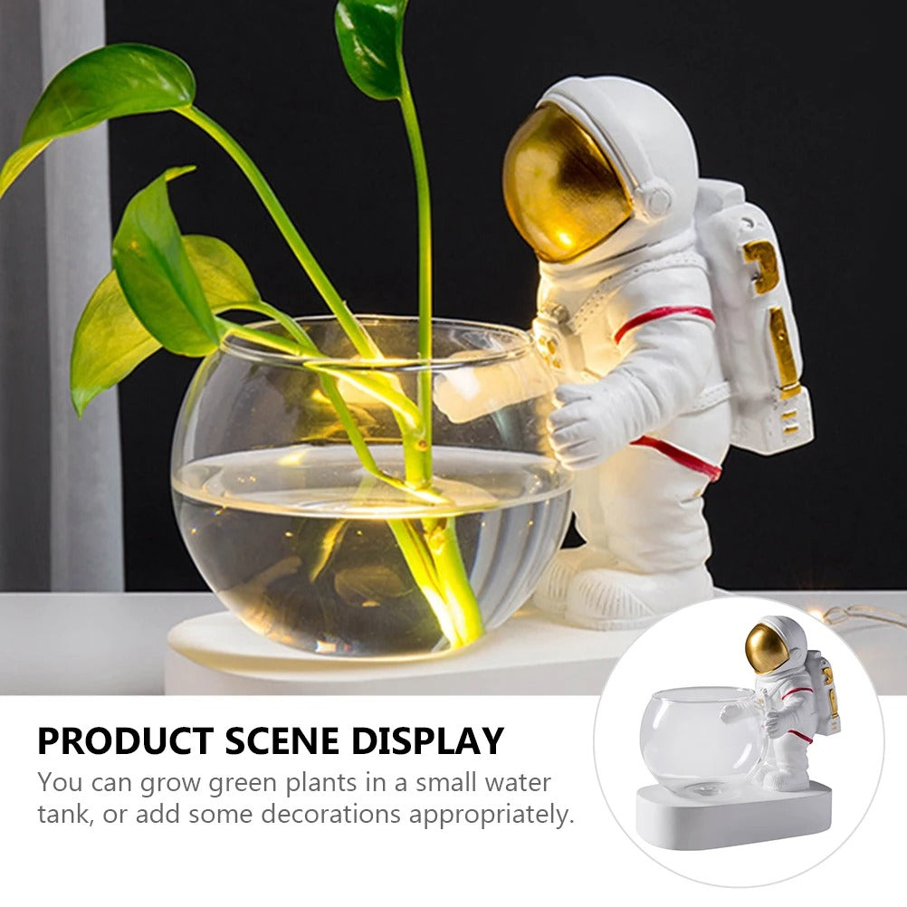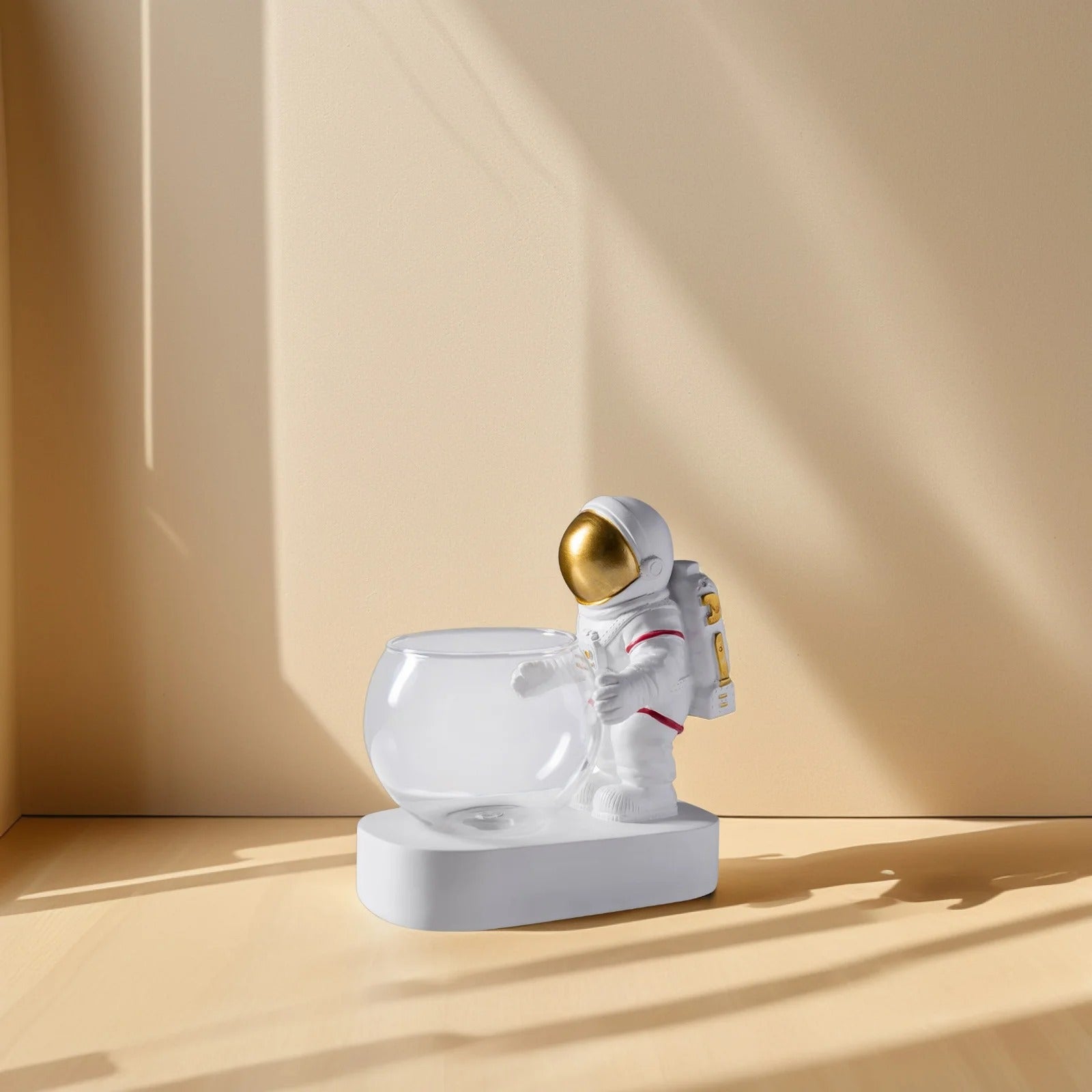 A: Yes, the astronaut is permanently secured to the white base platform for stability, while the glass bowl is removable for easy cleaning and plant arrangement.