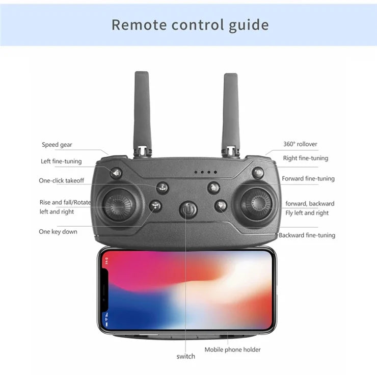 A: Yes, the remote control has an adjustable phone holder that fits most smartphones. You'll need to download the companion app for full functionality.