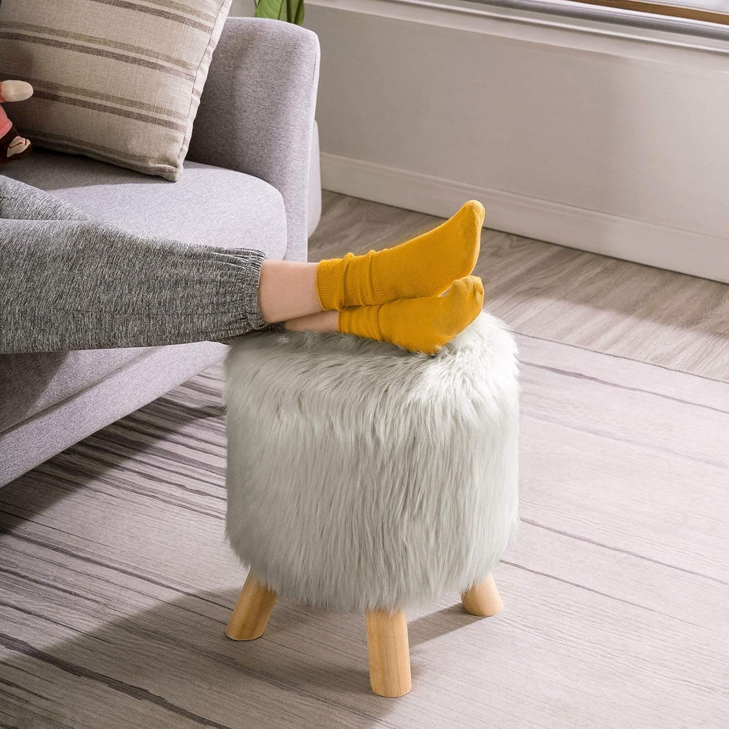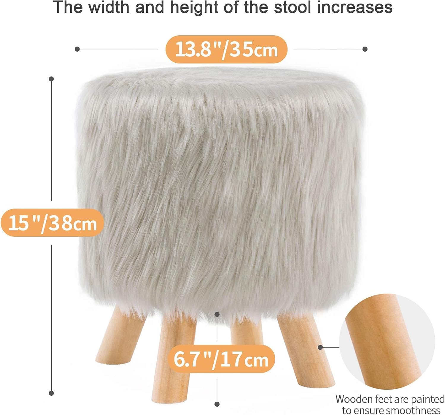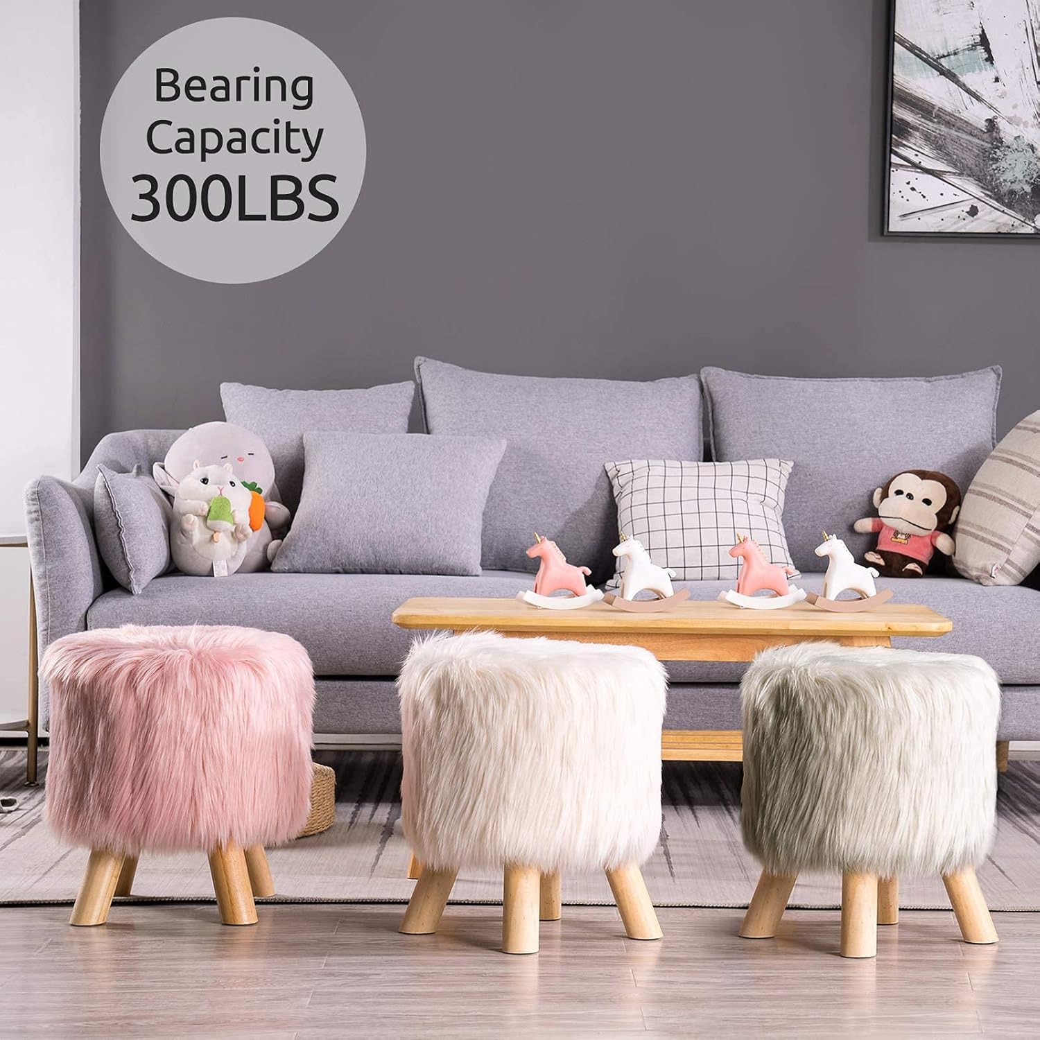 A: Our stools feature higher density faux fur, solid wood legs (not composite), better padding, and smooth leg finish compared to lower-quality options with rough wood and thin fur.