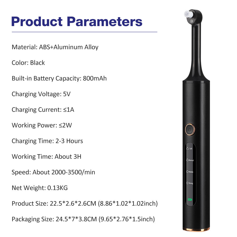 A: Soft mode (beginners/light cleaning), Normal mode (sensitive teeth/daily care), Middle mode (tobacco/coffee stains), and Strong mode (deep cleaning/whitening). Each mode adjusts the rotation speed and intensity to match specific cleaning requirements.