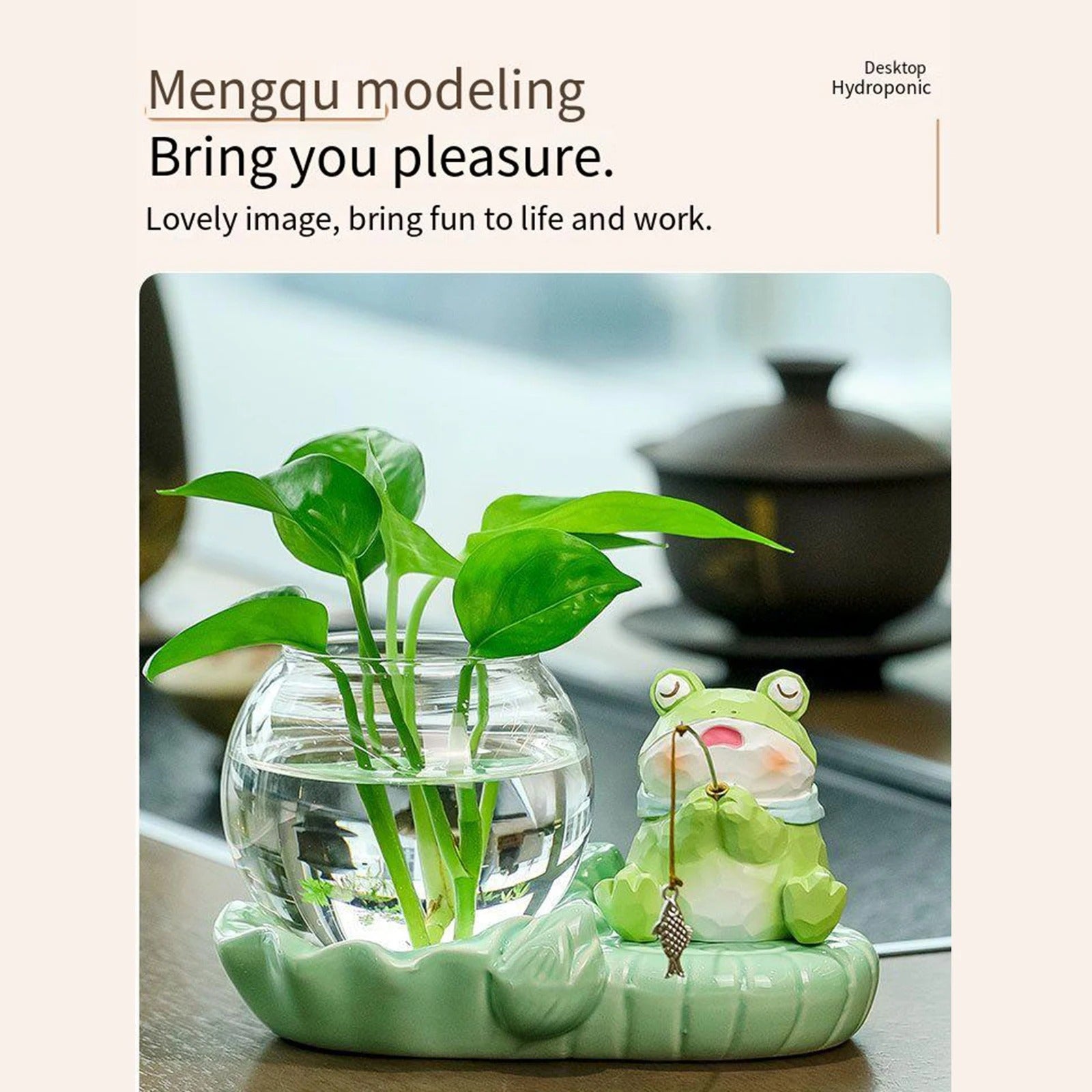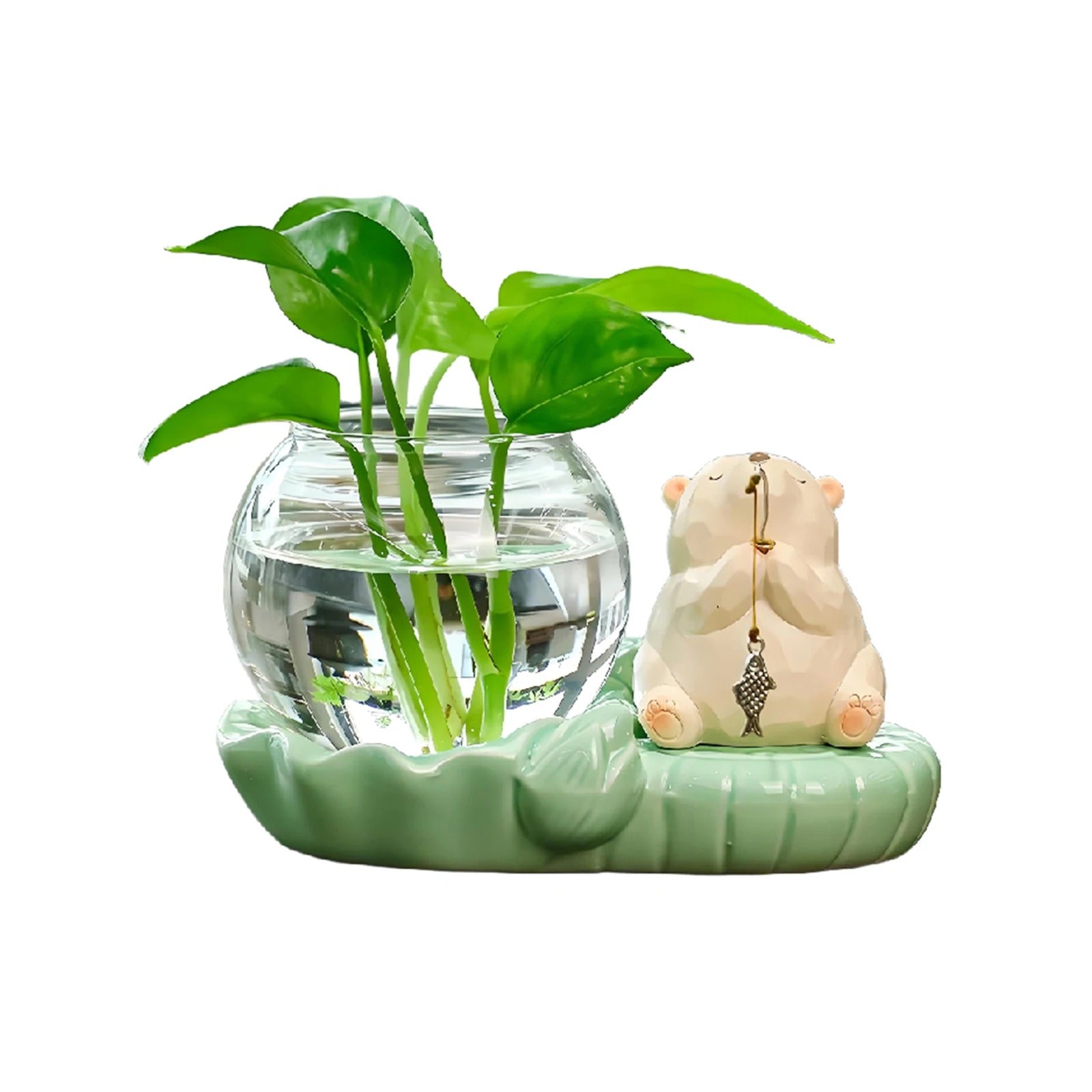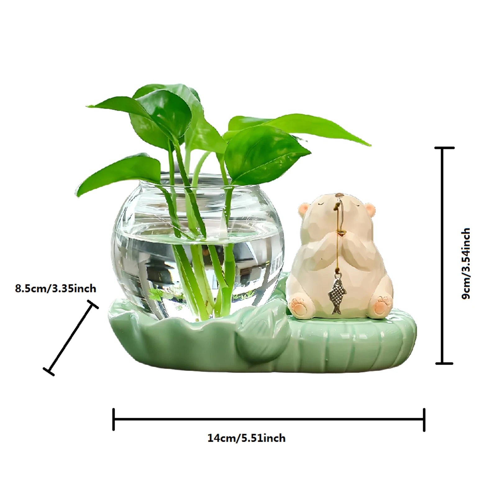 A: The glass bowl holds approximately 200ml of water, and the ceramic base measures roughly 15cm x 10cm, making it ideal for desktop placement.
