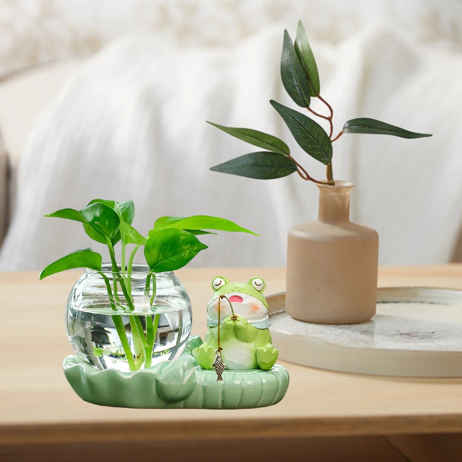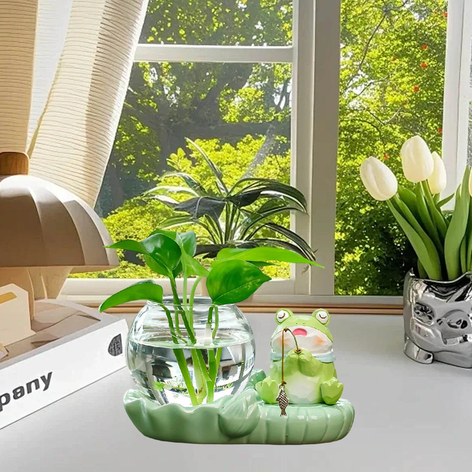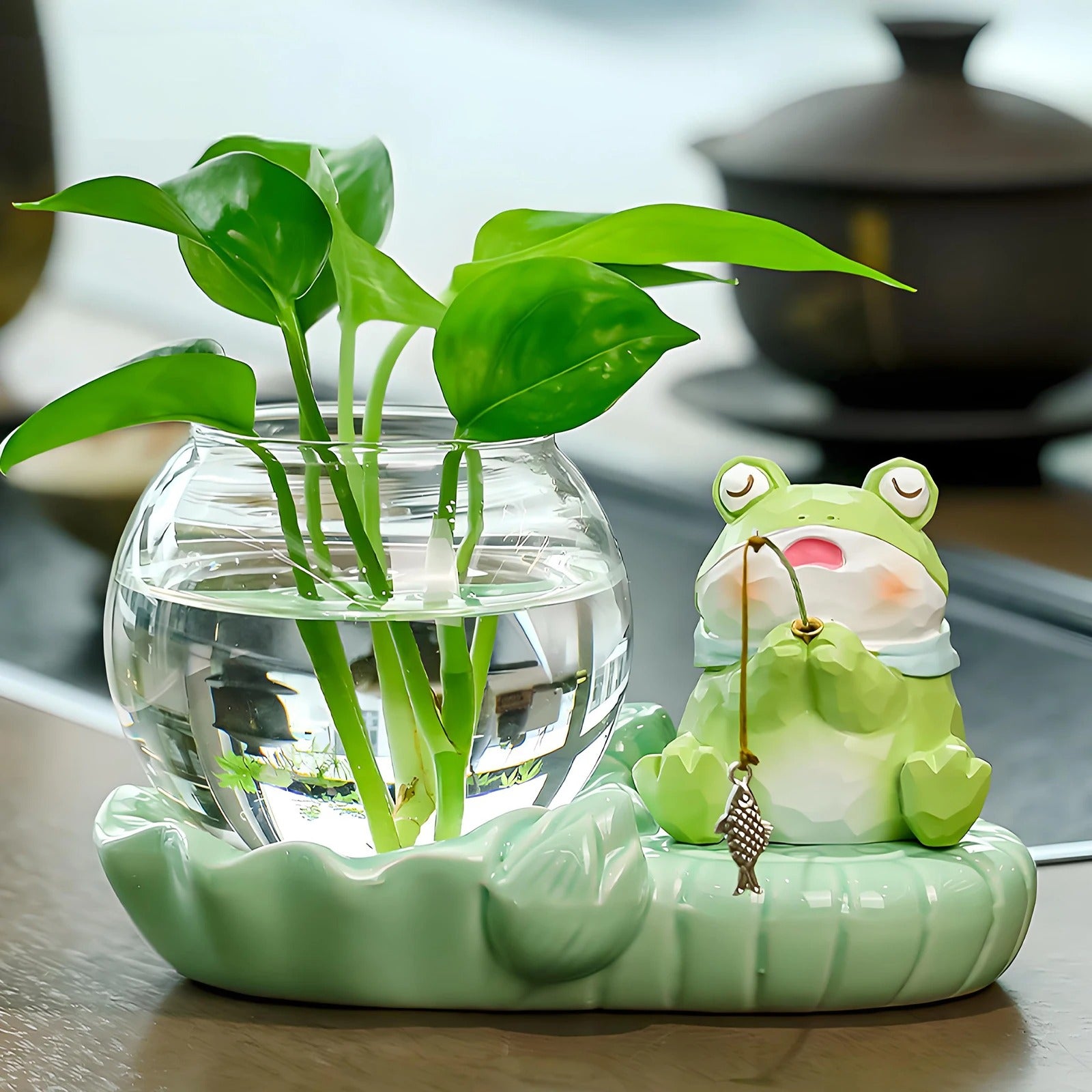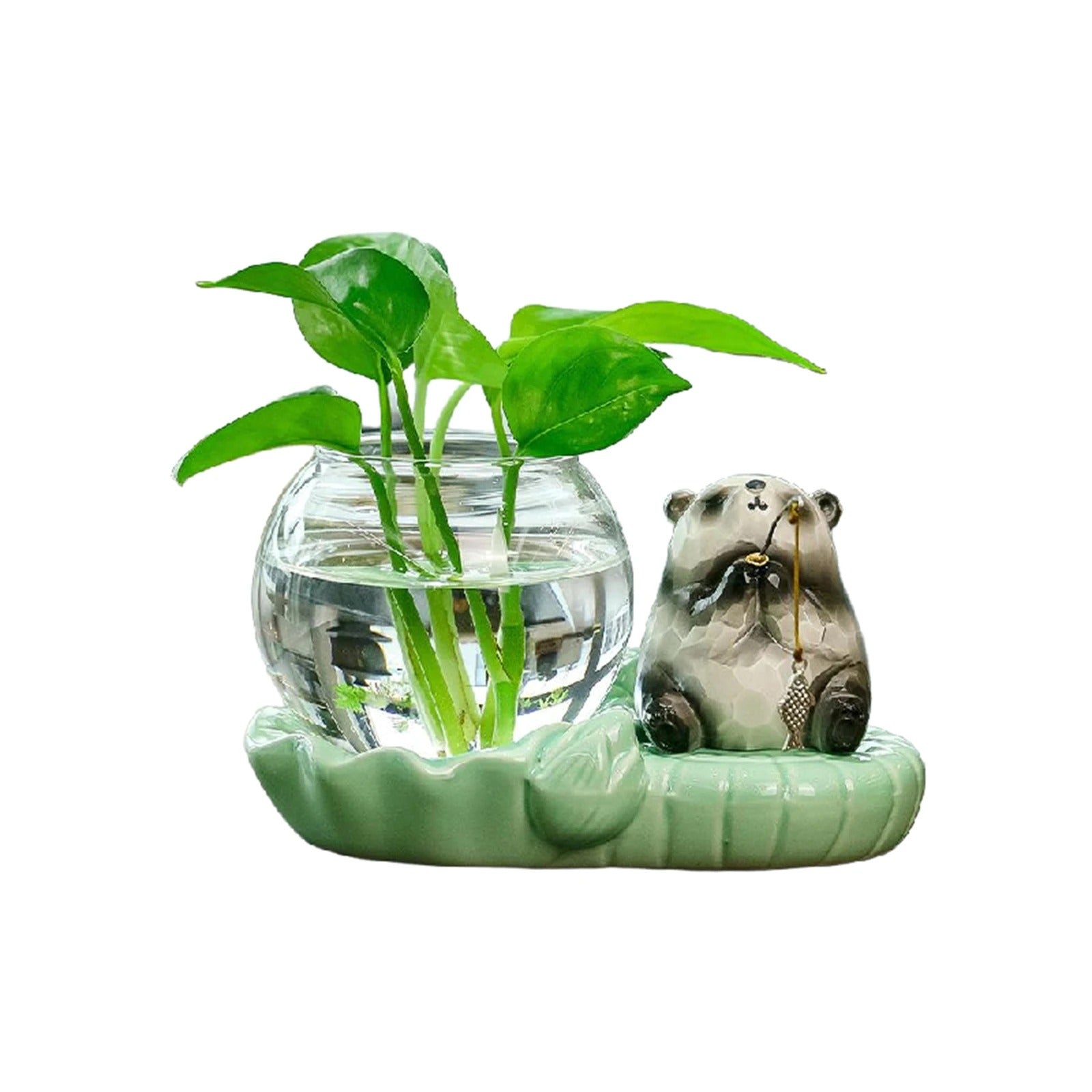 A: The glass bowl holds approximately 200ml of water, and the ceramic base measures roughly 15cm x 10cm, making it ideal for desktop placement.