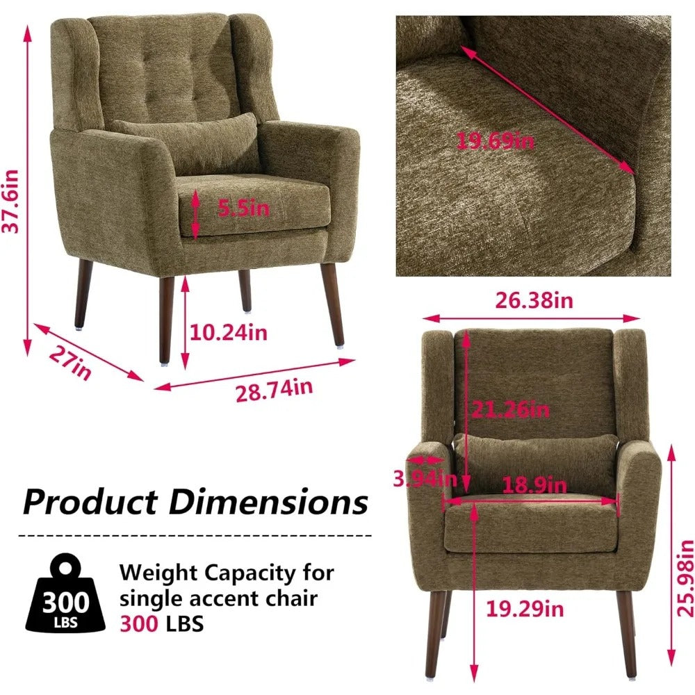 Modern Accent Chair – Chenille Fabric Upholstered Tufted Wingback Side Chair