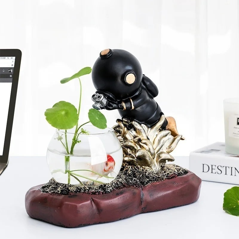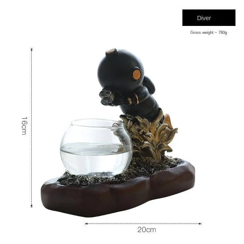 A: The planter measures 24cm (length) x 8.5cm (height) x 14cm (width). The total weight varies by model - the diver version weighs approximately 780g.