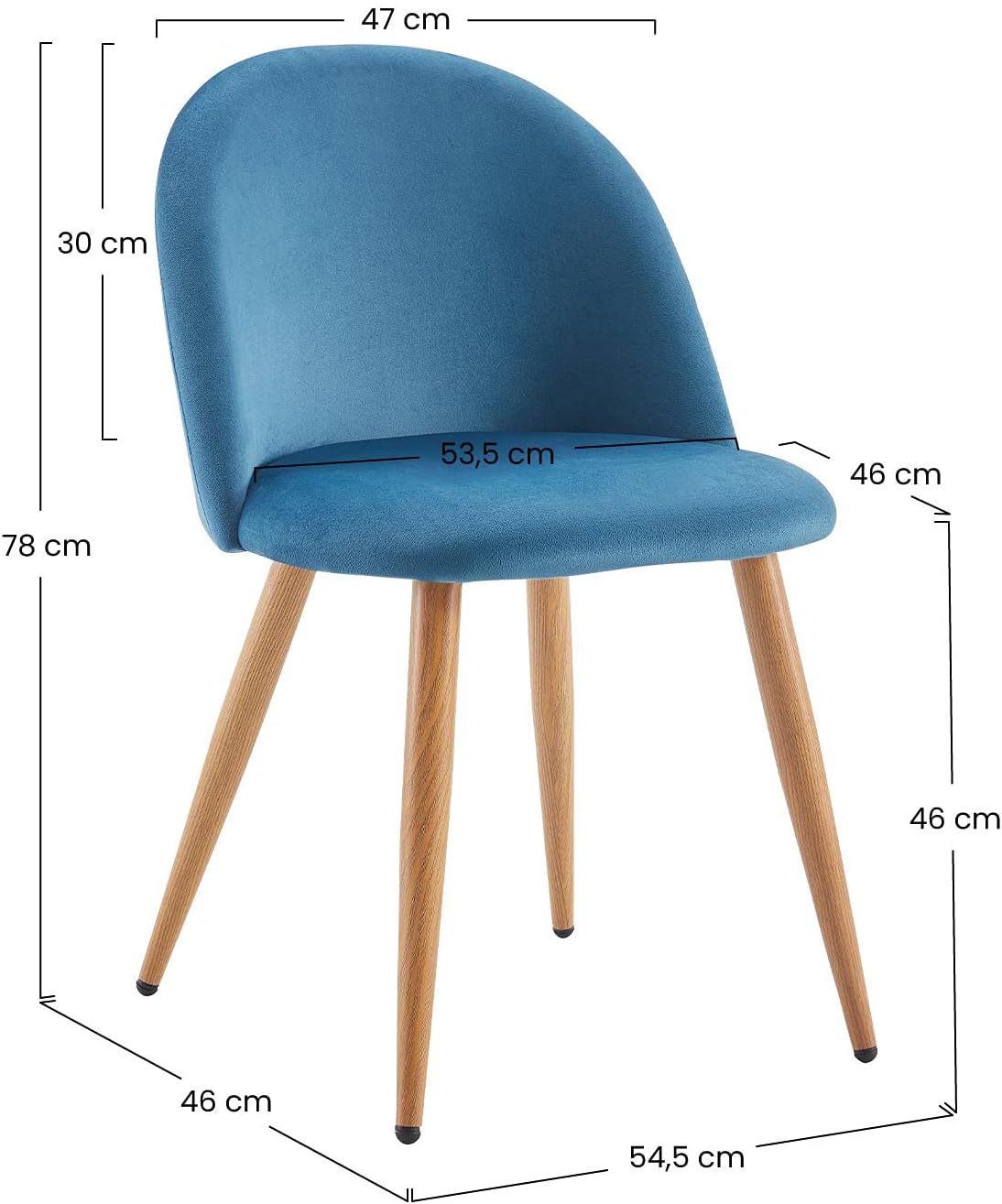 A: Each chair measures 47cm width x 54.5cm depth x 78cm total height, with a seat height of 46cm and seat depth of 53.5cm.