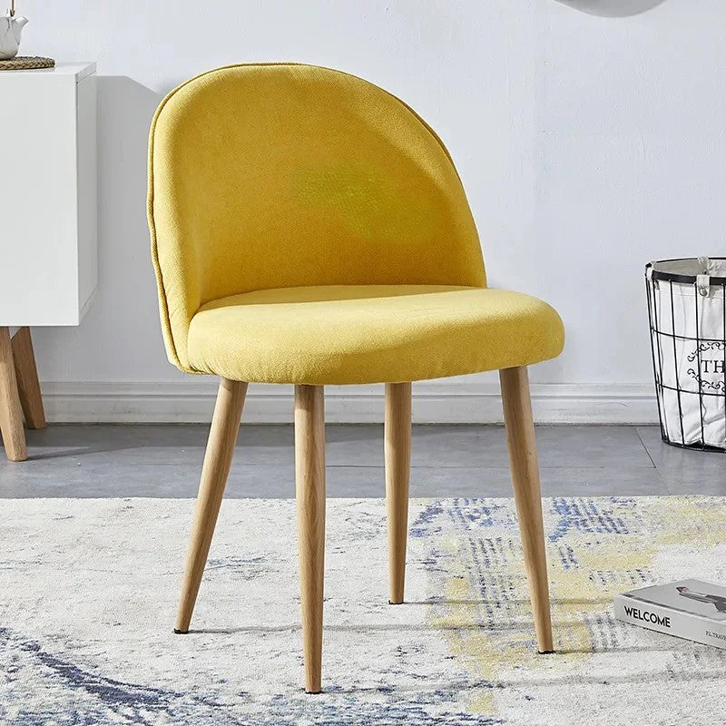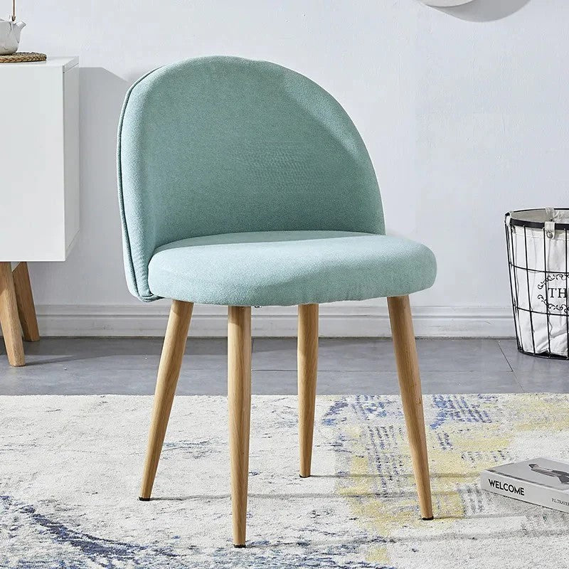 A: The legs feature a natural wood finish and include protective rubber tips to prevent scratching floors and reduce noise.