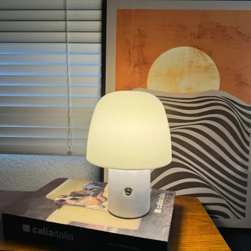 A: The lamp measures approximately 6-7 inches in diameter and 8-9 inches in height, making it ideal for most table surfaces.