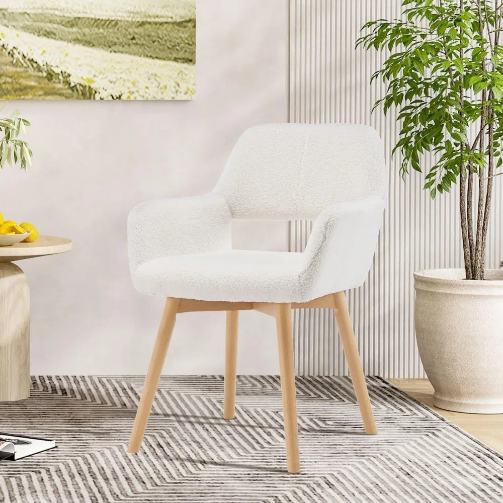 Wool White Upholstered Desk Chair – Mid Century Modern Accent Chair